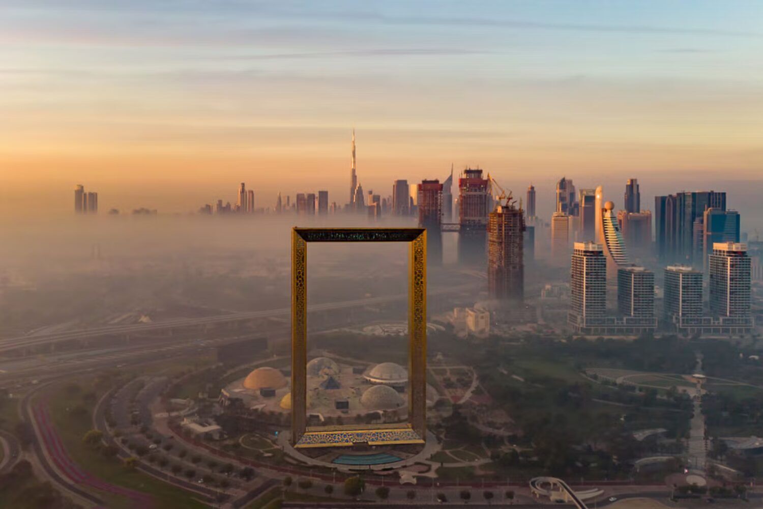 Visit the iconic Dubai Frame, a giant golden frame standing approximately 150 metres tall, located in Zabeel Park. From the top, you get stunning 360° views—looking north, you see the old Dubai; looking south, the modern skyline unfolds before you